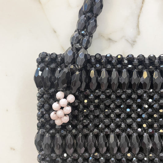 Vintage Black Beaded Bag 1960s
