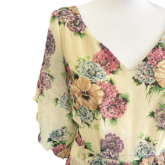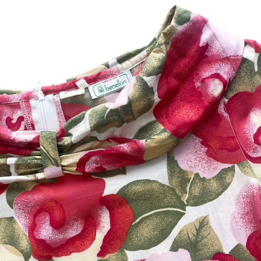 Vintage Floral Pattern Cotton Dress - Benetton 1980s