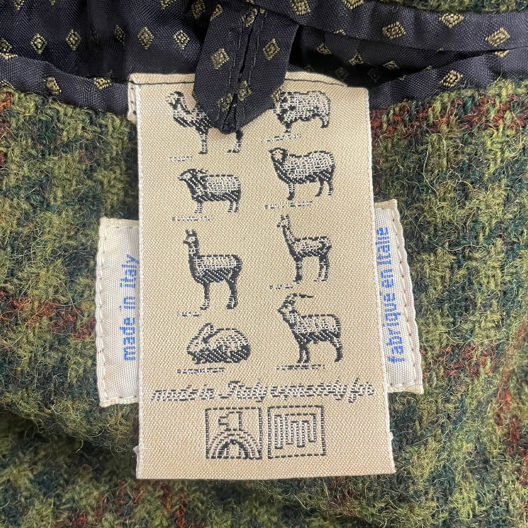 Giacca vintage autentica firmata Oliver by Valentino, realizzata in pregiata lana con motivo pied de poule. Questo capo rappresenta un pezzo di moda storica, caratterizzato da una costruzione impeccabile e dettagli sartoriali raffinati tipici della maison. Il pattern classico e la qualità del tessuto garantiscono versatilità e durabilità nel tempo. Perfetta per chi apprezza l'eleganza senza tempo e desidera investire in capi di qualità superiore con pedigree stilistico riconosciuto.